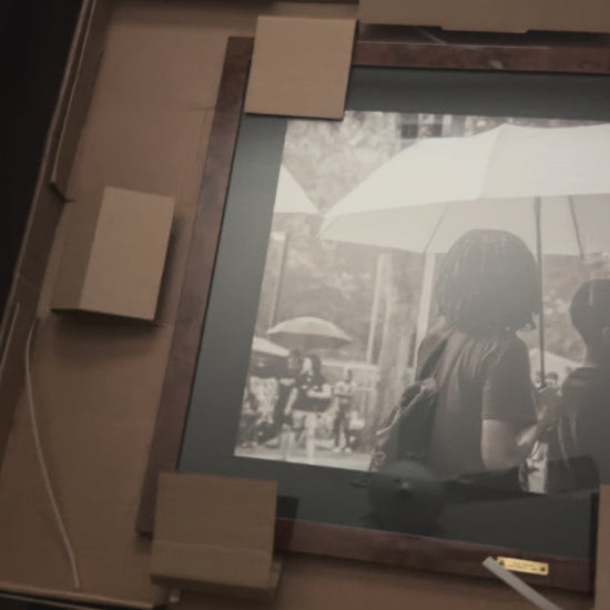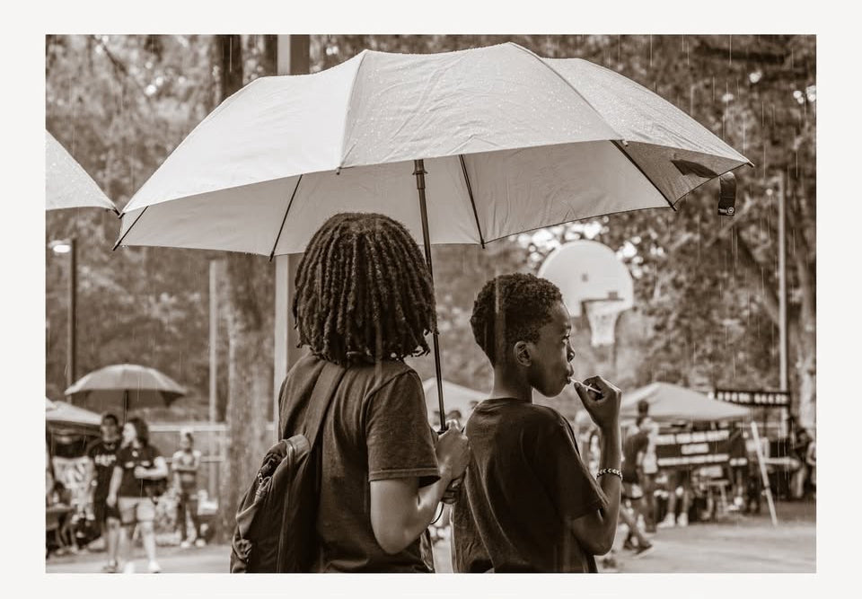 “Protectors” captures a quiet moment of care as one figure stands beneath an umbrella beside another, naturally taking on the role of shield. The piece reflects loyalty, awareness, and the unspoken responsibility people carry for those around them.